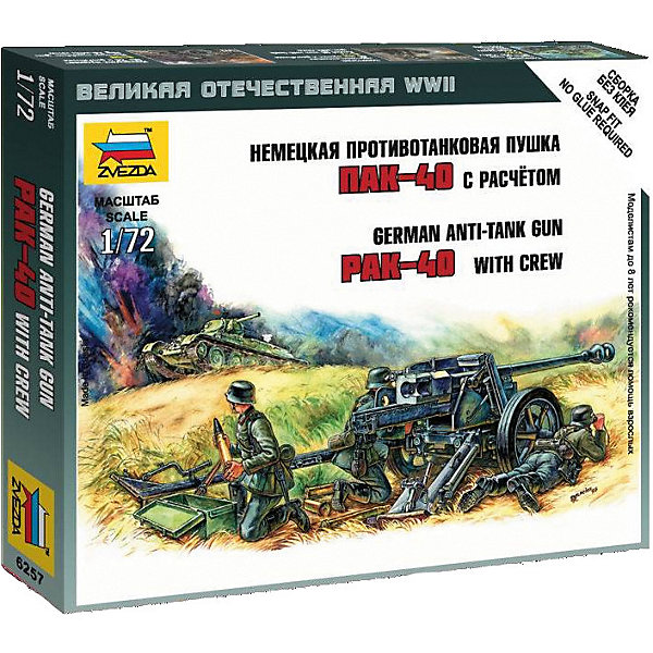 Сборная модель Звезда "Немецкая противотанковая пушка ПАК-40", 1:72 (сборка без клея)