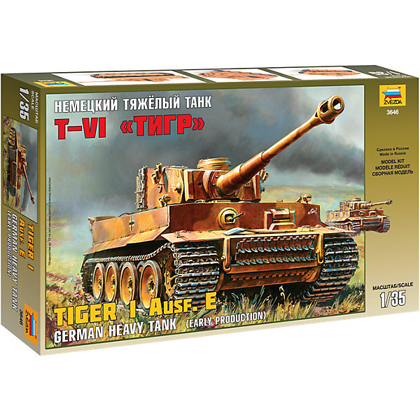 Модель сборная "Немецкий тяжелый танк Т-VI Тигр" от компании "Звезда" приятно порадует любого коллекционера сборных моделей. Она отличается высокой точностью исполнения. Модель представляет собой миниатюрную копию легендарного немецкого танка, которому противостояли наши Т-34. Выполнена в масштабе 1:35.