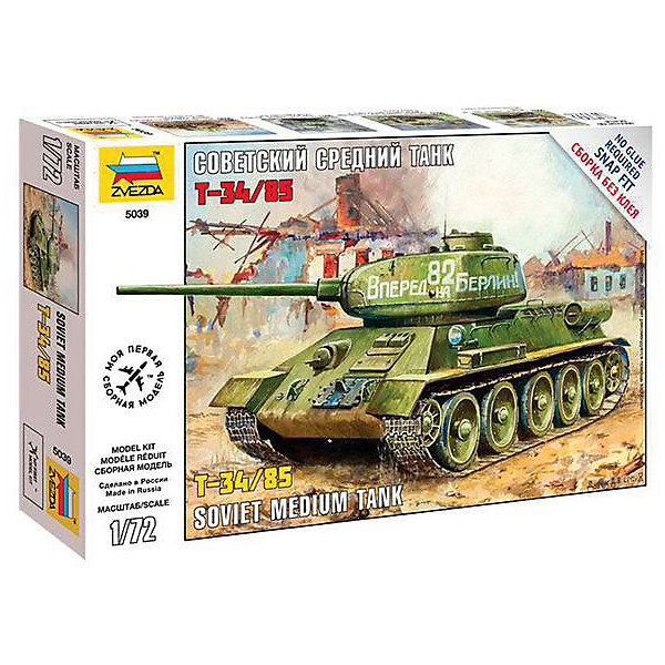 Сборную модель от бренда Звезда «Советский средний танк Т-34/85» можно купить в нашем интернет-магазине.