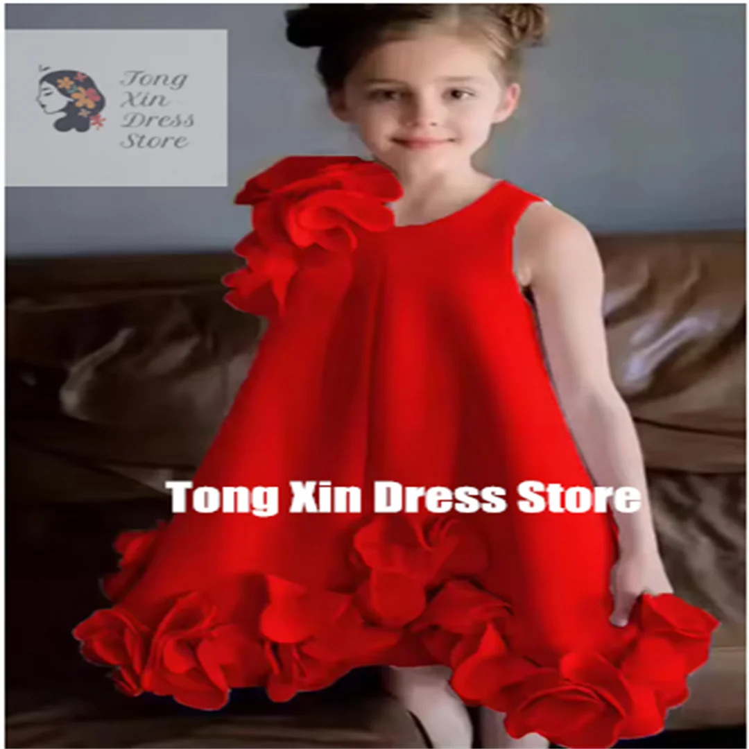 Свадебное 3D аппликация пышное детское платье без рукавов с цветочным узором на день рождения для девочек на конкурс принцессы детское платье для первого причастия