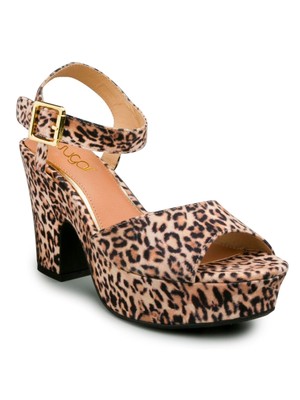 SUGAR Женские коричневые сандалии с пряжкой на блочном каблуке с открытым носком и животным принтом 7,5, Коричневый, SGR-ECLECTIK