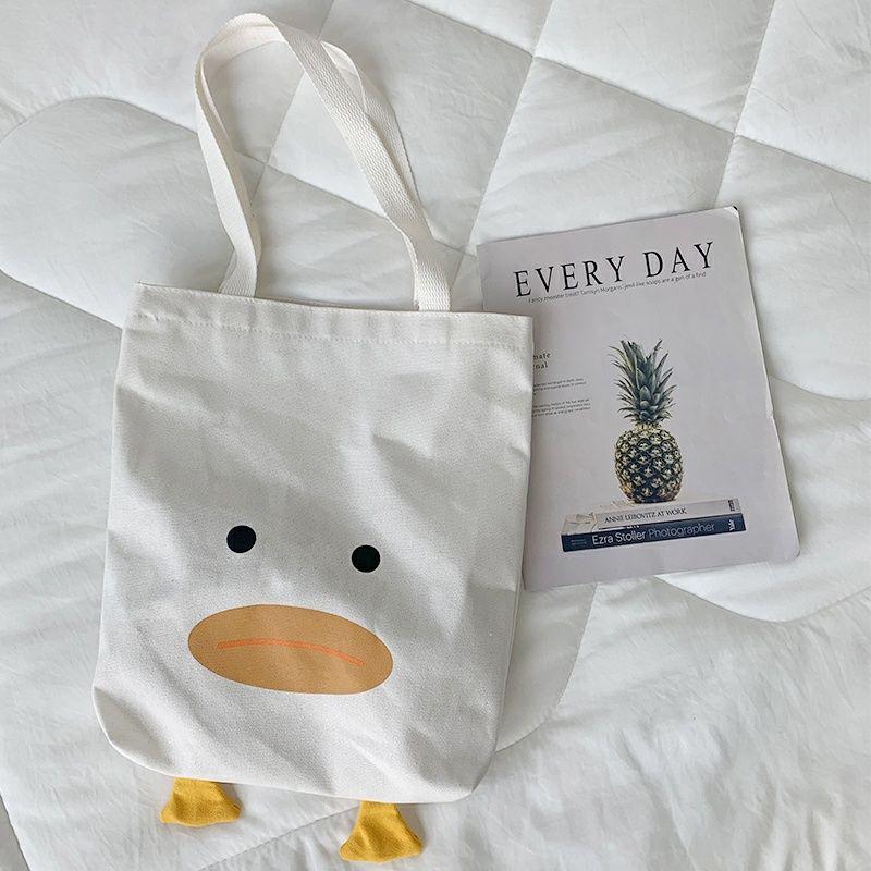 Свежая и милая холщовая сумка-тоут с мультяшным желтым утенком - Модная студенческая сумка с дизайном утки с большим ртом 39*34 cm