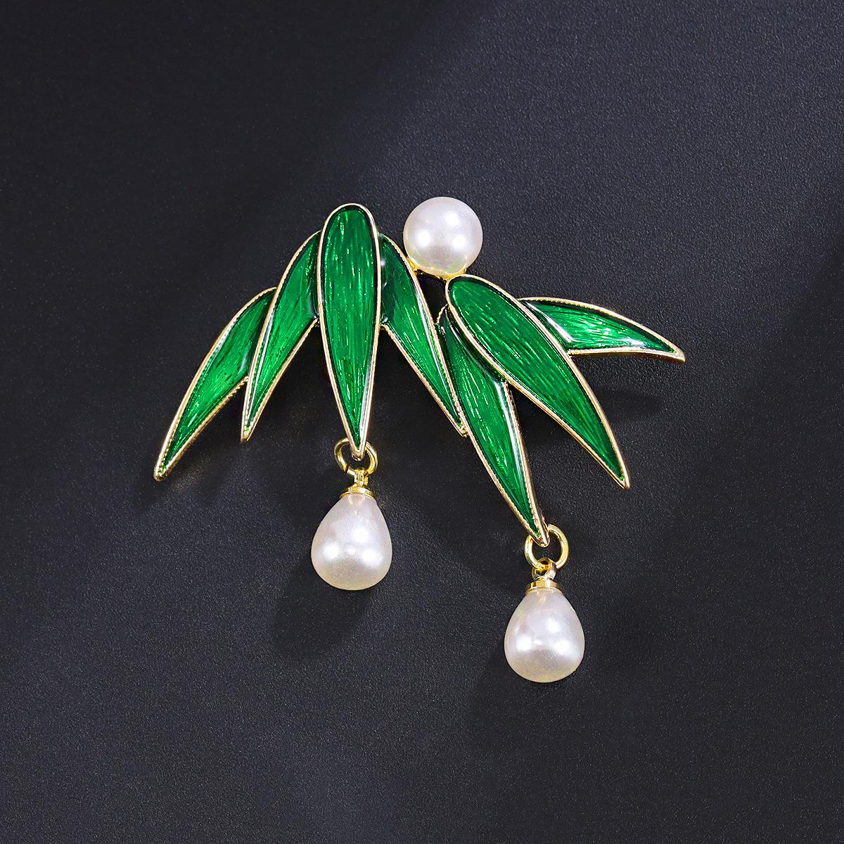 Свежая и элегантная зеленая брошь с растительным дизайном в виде листа из сплава, жемчужные украшения, корсаж, женская простая антибликовая булавка