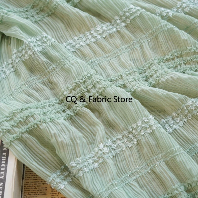 Сверкающая полосатая вышитая эластичная шифоновая ткань с рюшами для вечернего платья, свадебного платья, юбки, костюмов, украшения дома