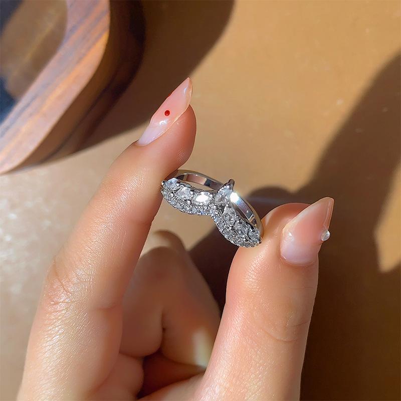 Сверкающее кольцо-корона с бриллиантами V-образной формы с серебряным покрытием из белого золота, кольцо с бриллиантом конский глаз для леди, ювелирный подарок для вечеринки, дня рождения 10