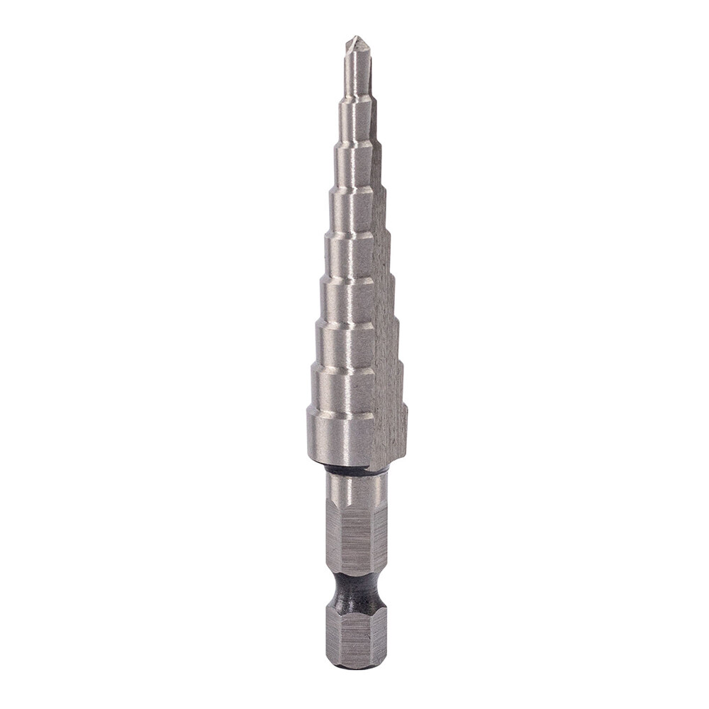 Предназначено для получения отверстий различного диаметра, а также применяется для расширения уже существующих отверстий без перестановки режущего инструмента в изделиях из цветных металлов, тонколистовом металле и твердом пластике. Сверло изготовлено из быстрорежущей стали M2, что позволяет уверенно работать даже с твердым металлом. За счет угла заточки 118° и подточки обеспечивается сверление без смещения с соблюдением нужного размера отверстия. Рабочая часть оснастки сверлит отверстия без деформации, образуя чистую кромку без зазубрин.