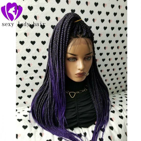 new ombre purple color synthetic braided wigs high temperature fiber hair long box braids lace front wig for women, Black