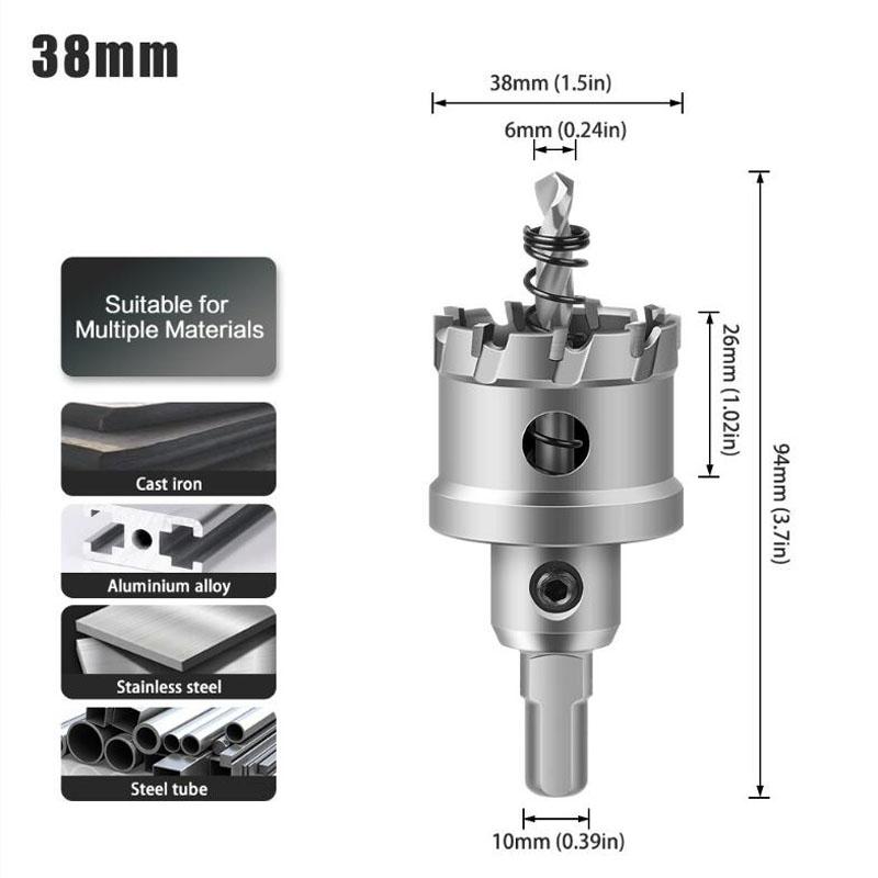 Сверло с твердосплавным наконечником TCT, сверло-кольцевая пила, фреза для сверления металлических сплавов из нержавеющей стали 38mm серый