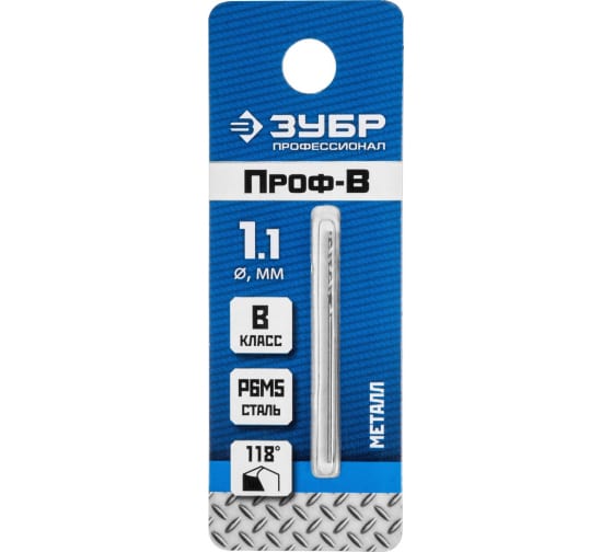 Сверло ⌀1.1 мм x 3.4 см/1.2 см, Р6М5, по металлу, ЗУБР Профессионал, 1 шт. (29621-1.1)