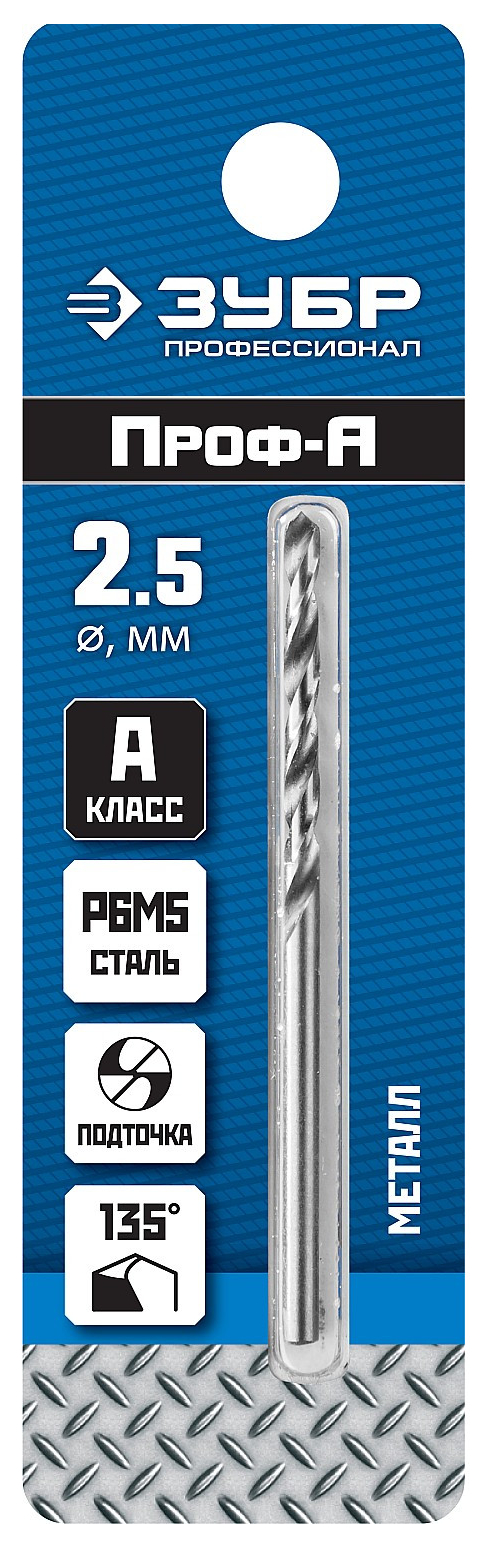 Сверло ⌀2.5 мм x 5.7 см/3 см, сталь Р6М5, по металлу, ЗУБР Профессионал, 1 шт. (29625-2.5)