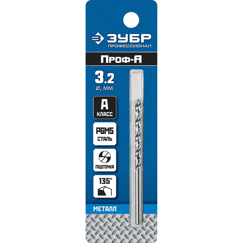 Сверло ⌀3.2 мм x 6.5 см/3.6 см, сталь Р6М5, по металлу, ЗУБР Профессионал, 1 шт. (29625-3.2)
