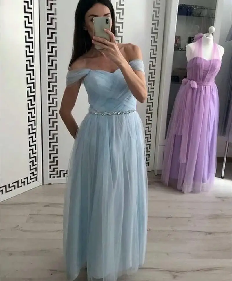 Светильник-голубые платья для выпускного вечера с открытыми плечами, длиной до пола, женское длинное официальное вечернее платье, платья дл...