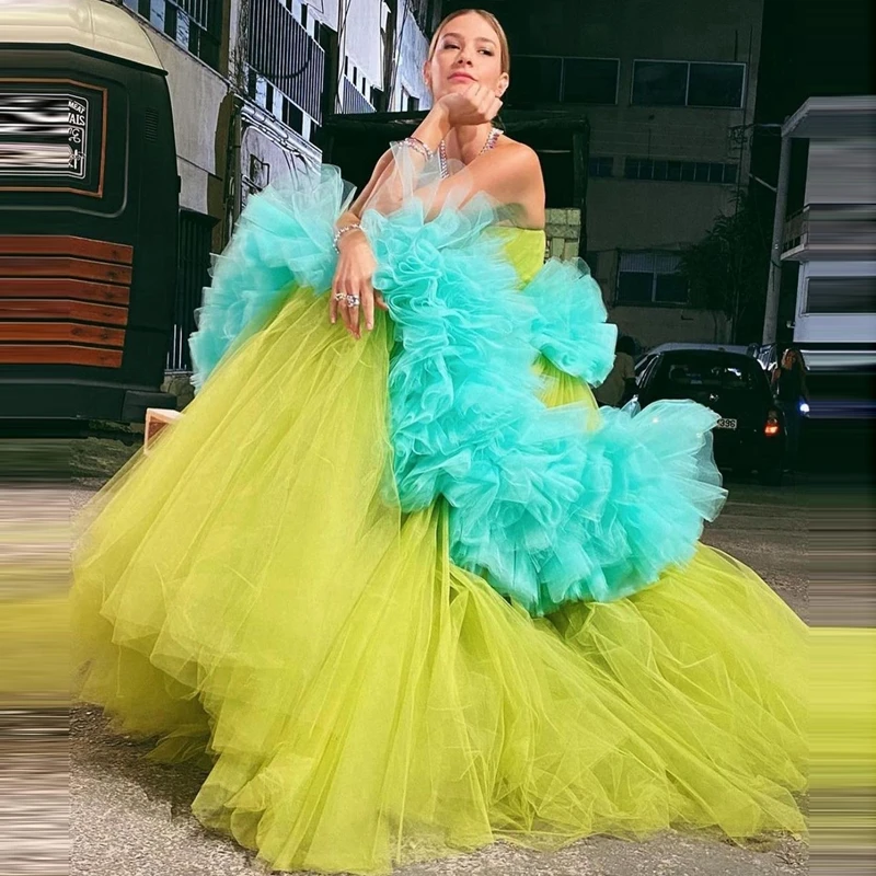 Светильник-зеленое бальное платье из тюля Пышное вечернее платье Элегантные платья для женщин синее платье с оборками для выпускного вечер...
