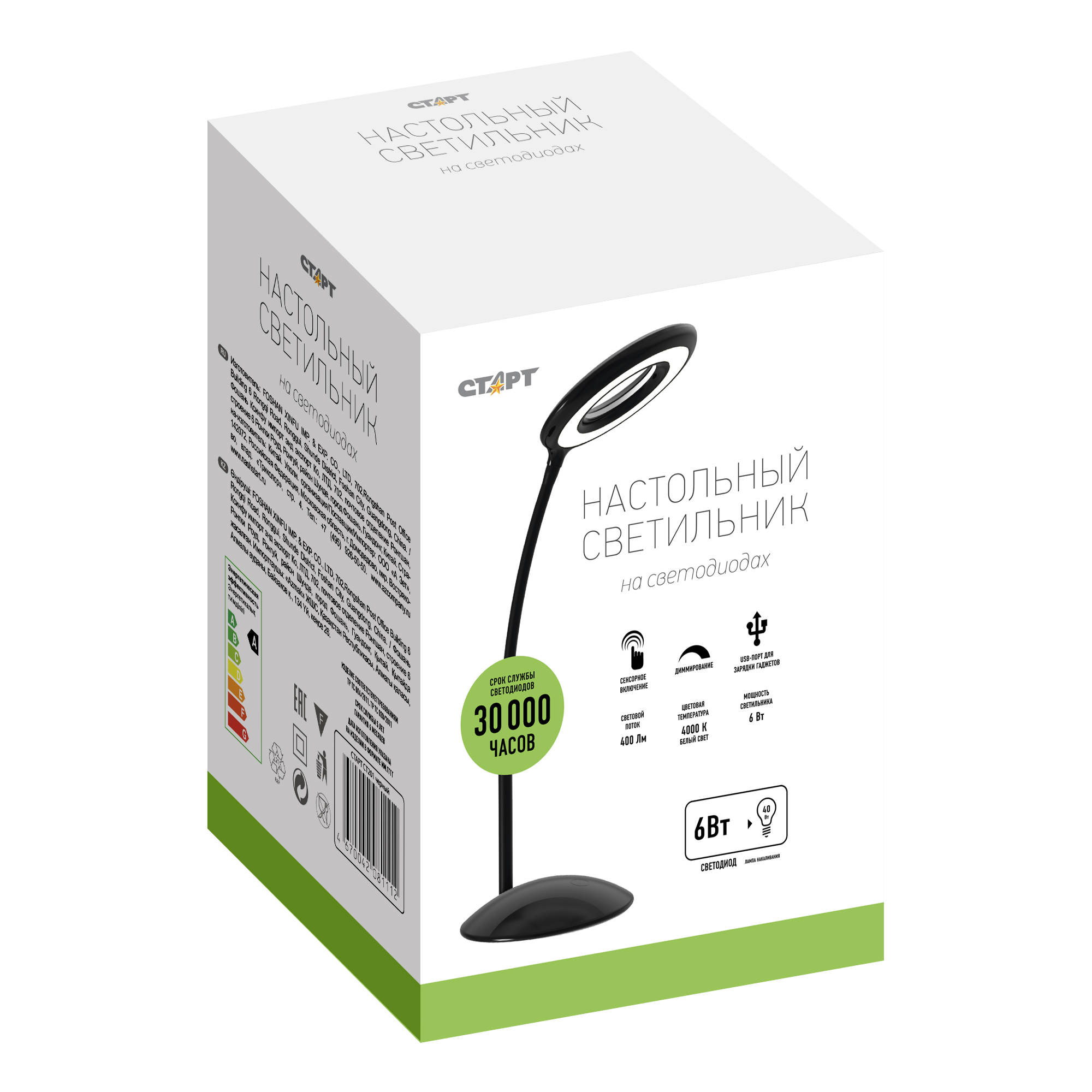 Светильник настольный СТАРТ СТ201, -, 6 Вт, 4000K/400лм, Тип выключателя сенсорный с диммером, черный, СТ201