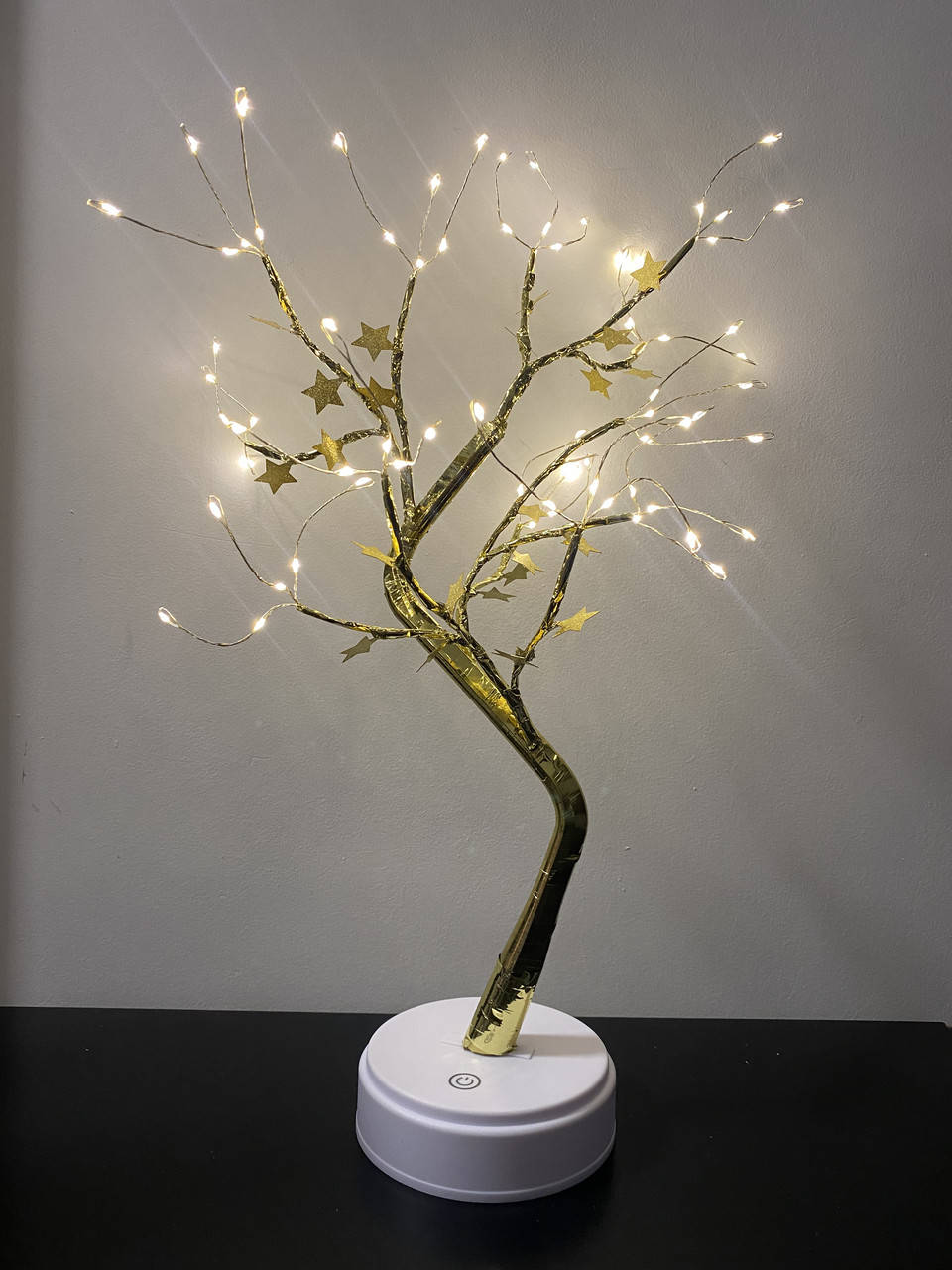 Светильник-ночник "Звездное дерево Бонсай” золотистого цвета с LED подсветкой, настольная лампа для дома, Золотистый