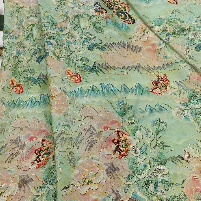 Светло-зеленая парча с цветочным принтом и бабочкой для танцев, летняя рубашка Qipao, женское платье, удобная тонкая ткань