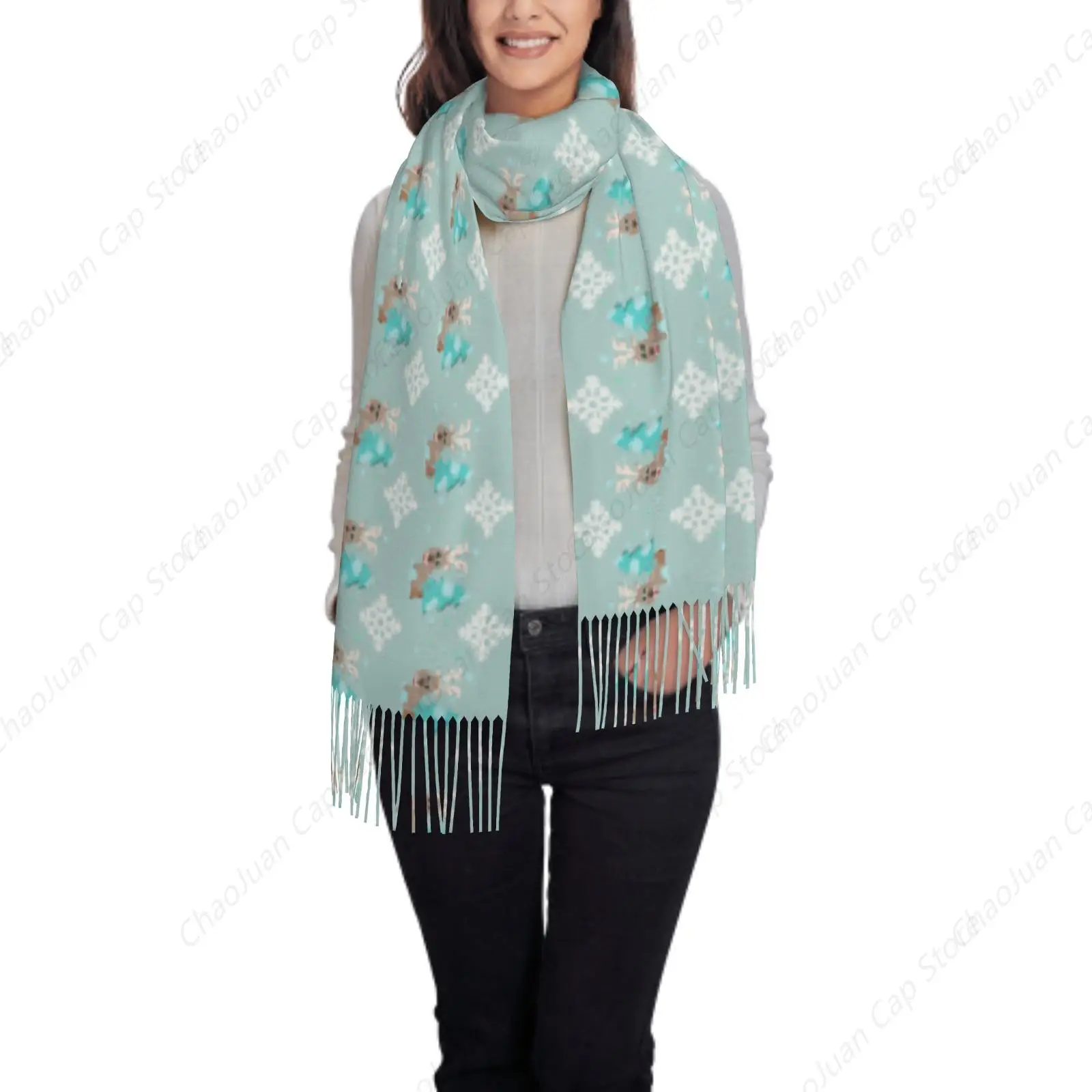 Светло-зеленый кашемировый зимний шарф с принтом оленя и снежинок, модное мягкое теплое женское одеяло, шаль, свежее Рождество