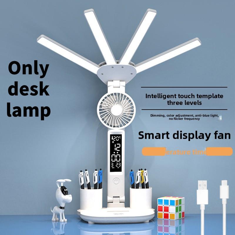 Светодиодная лампа настольная студенческая сенсорная с диммированием ночник спальня кабинет принадлежности White 4 Heads Lamp Fan