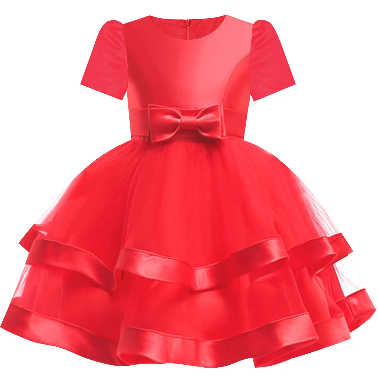 Flower Girl Dress Short Sleeve Red Ball Gown Wedding Party Pageant 2020 Summer Princess Dresses Children Clothes Sundress