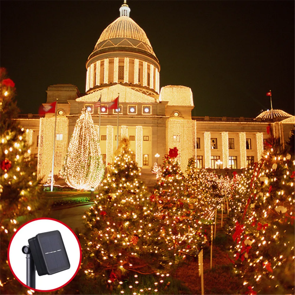 Светодиодная медная проволочная лампа на солнечной батарее 7 м, 12 м, 22 м, 32 м, Светодиодная лента, Сказочная гирлянда, уличное украшение для сада, свадьбы, Рождества