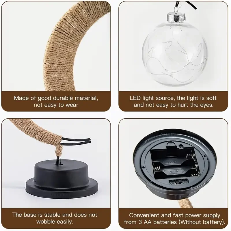 Светодиодная настольная декоративная настольная лампа, звезда, луна, яблоко, Рождество, подарок на день рождения, ручная работа, пеньковая веревка, USB, железная Ночная лампа