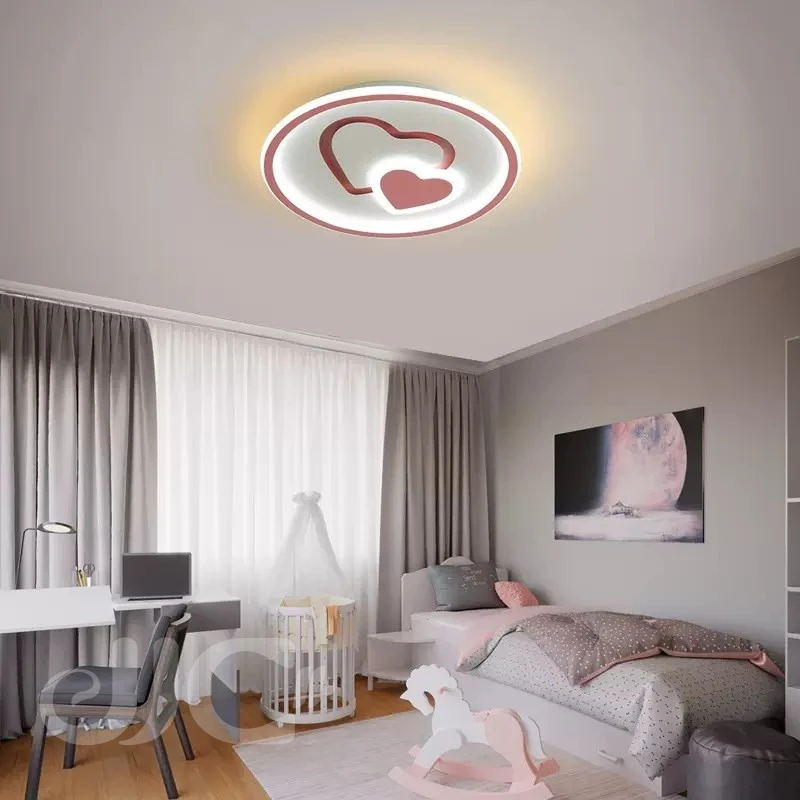 Светодиодная супертонкая потолочная лампа для спальни и детской комнаты, монохромная/Трехцветная/плавное затемнение, в форме сердца, лампа для учебы