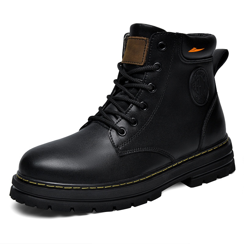 Kuding Мартин Бутс унисекс желто-черные утепленные ботинки с флисовой подкладкой, цвет Black, Fleece-Lined Insulated Shoes