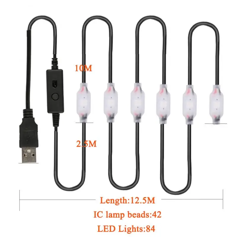 Светодиодная уличная Водонепроницаемая гирлянда RGB 12,5 М с управлением через приложение по Bluetooth, регулируемая яркость, голосовое управлени...