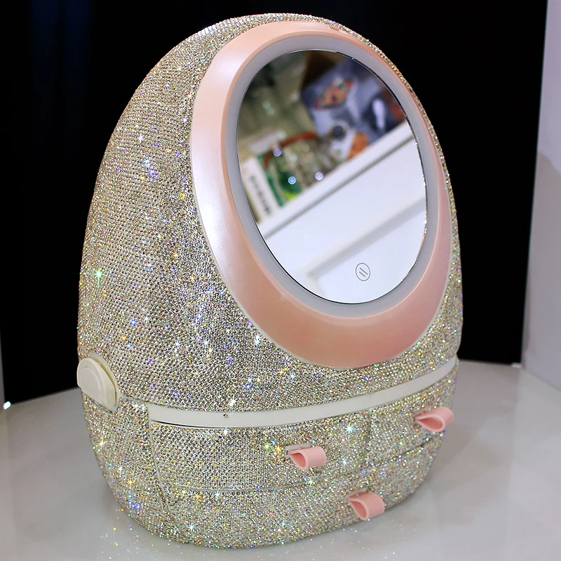 Светодиодное зеркало для макияжа с полными кристаллами в форме яйца большой размер коробка для хранения украшений светодиодное настольное...
