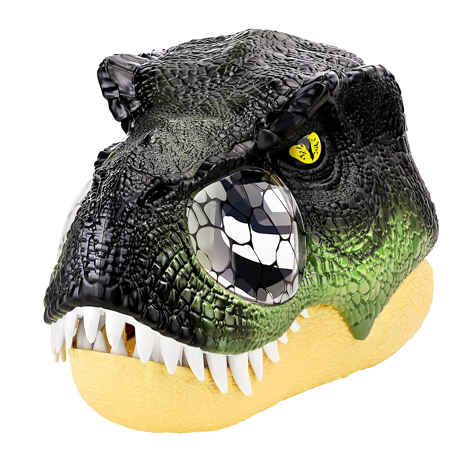 Светодиодные глаза, звуки маски T-Rex, реалистичные зубы, подвижная челюсть, открытый рот, реквизит для косплея на вечеринку в честь Хэллоуина зелёный