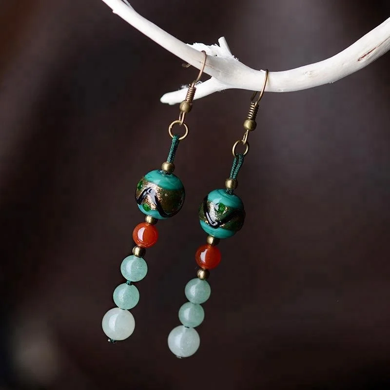 New Original handmade Aventurine dangle earrings ,handmade beaded nature stones ethnic tribe earrings, N/a