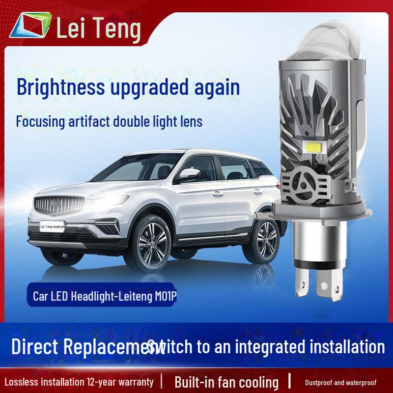 Светодиодные фары Lei Teng M01P с двумя фарами: Суперяркие, ближний и дальний свет, двойного назначения для автомобилей и мотоциклов, встроенный H4. H4 серебряный