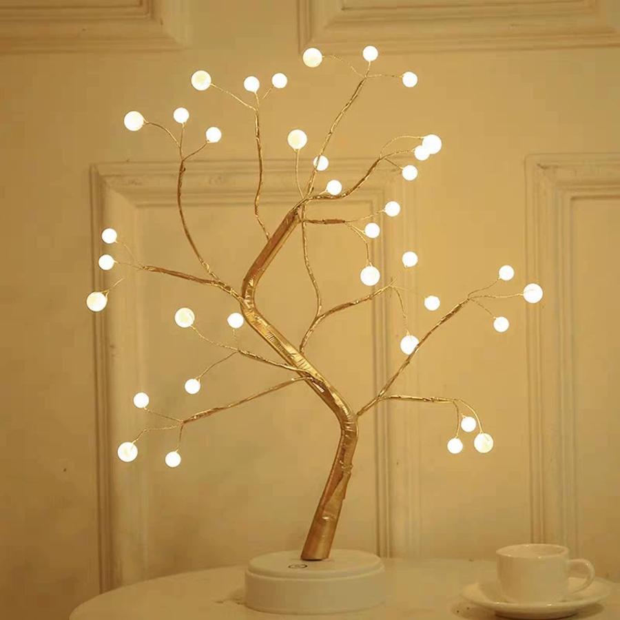 Светодиодный светильник-дерево с жемчугом, креативный ночник для сна, прикроватная лампа для спальни, девчачий, для изголовья, настольная лампа 36led-Warm White