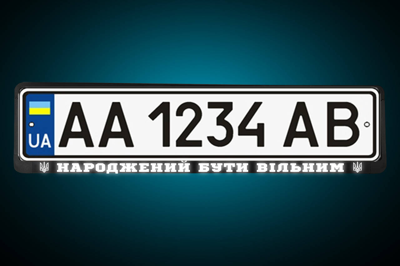 Светоотражающая Рамка под номер "НАРОДЖЕНИЙ БУТИ ВІЛЬНИМ" Номерная рамка , любая под заказ!