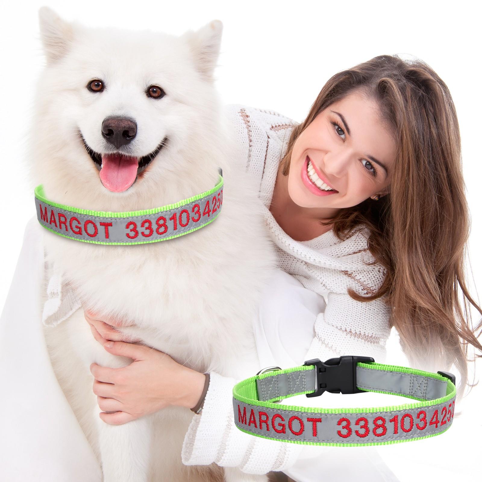 Светоотражающий персонализированный ошейник для собак с вышитым именем питомца и номером телефона, 4 регулируемых размера с быстросъемной пряжкой для мальчиков и девочек, большой размер One Size