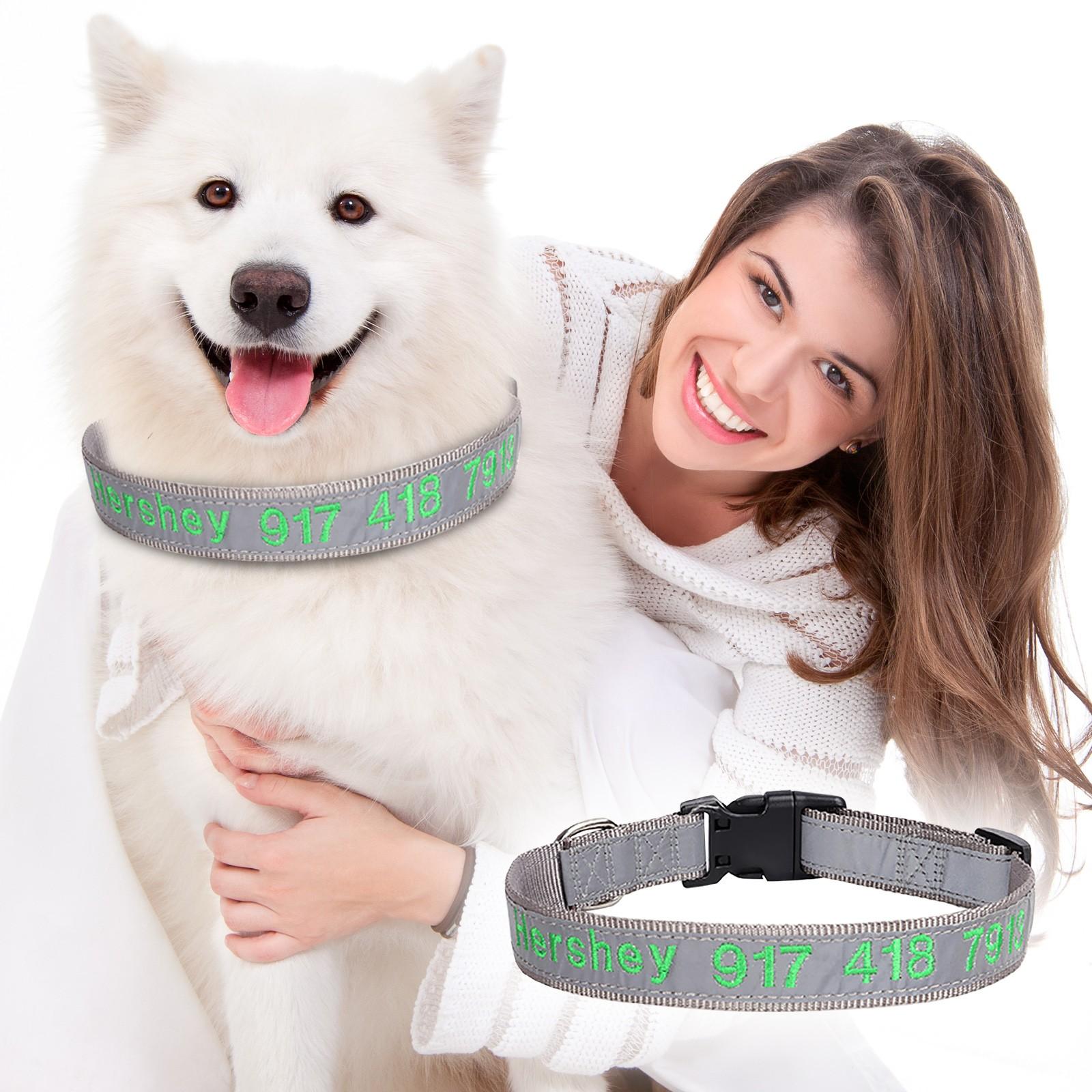 Светоотражающий персонализированный ошейник для собак с вышитым именем питомца и номером телефона, 4 регулируемых размера с быстросъемной пряжкой для мальчиков и девочек, большой размер One Size