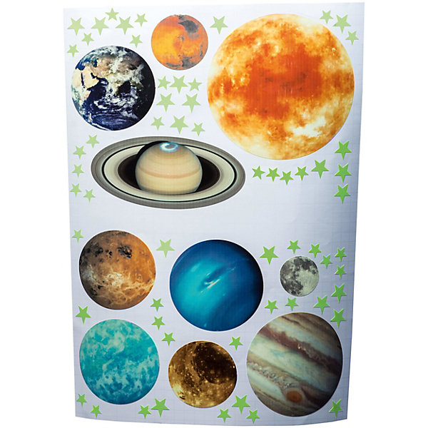 • в комплекте: 8 наклеек планет, наклейка солнце, россыпь звёзд, орбиты, книжка с фактами о планетах, инструкция для приклеивания