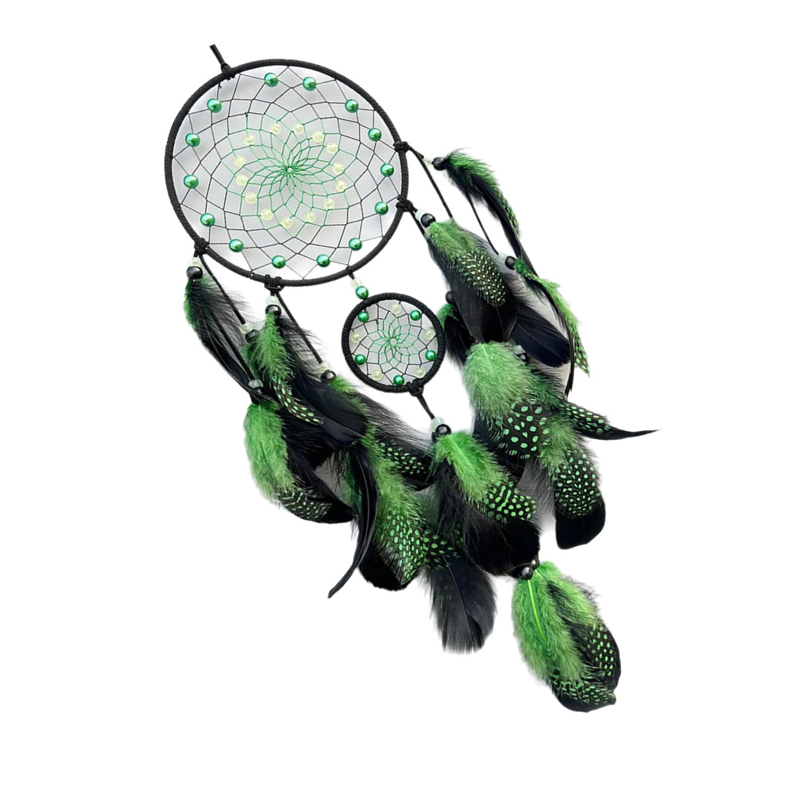 Светящийся в темноте ловец снов, настенное украшение с перьевыми кисточками, колокольчики ветра для декора спальни и детской зелёный