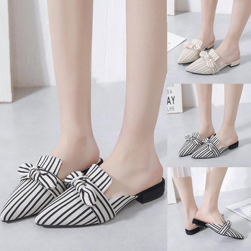 Shoes Women Vintage Striped Bowknot Slides Female Thick Block Slippers Sexy Summer Slip-on Shoes Sandalia Feminina 4.23, Kh
