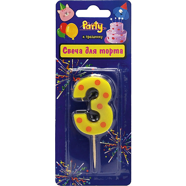 Свеча для торта Action! "Цифра 3", разноцветная, 4,8 см