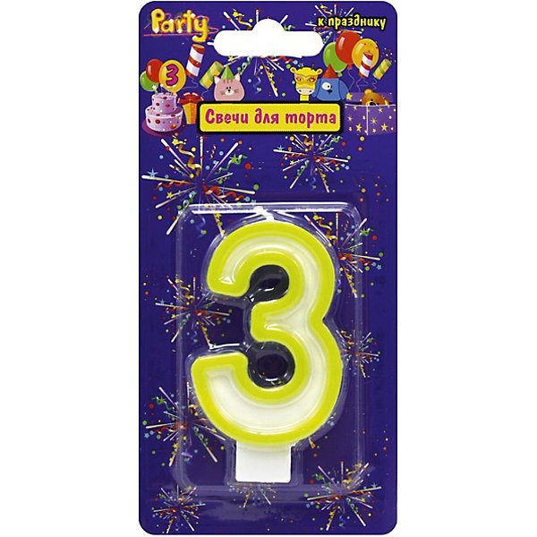 Свеча для торта Action! "Цифра 3", разноцветная, 7 см