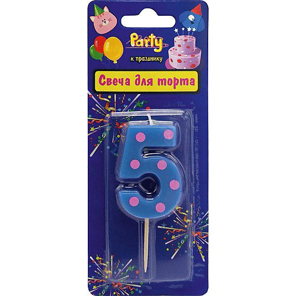 Свеча для торта Action! "Цифра 5", разноцветная, 4,8 см