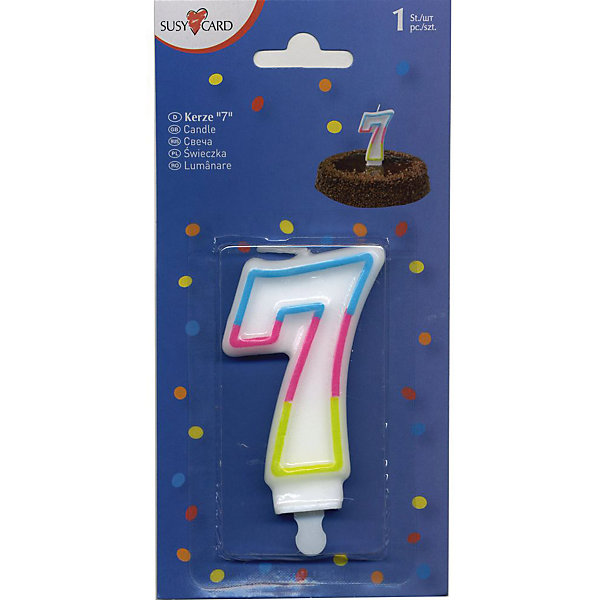Свеча-цифра для торта Susy Card "7" 7,5 см., радужная