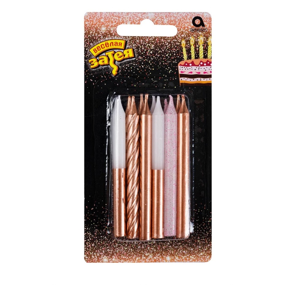 Свечи для торта "весёлая затея" розовое золото/белые блеск 12 шт 8см, Китай