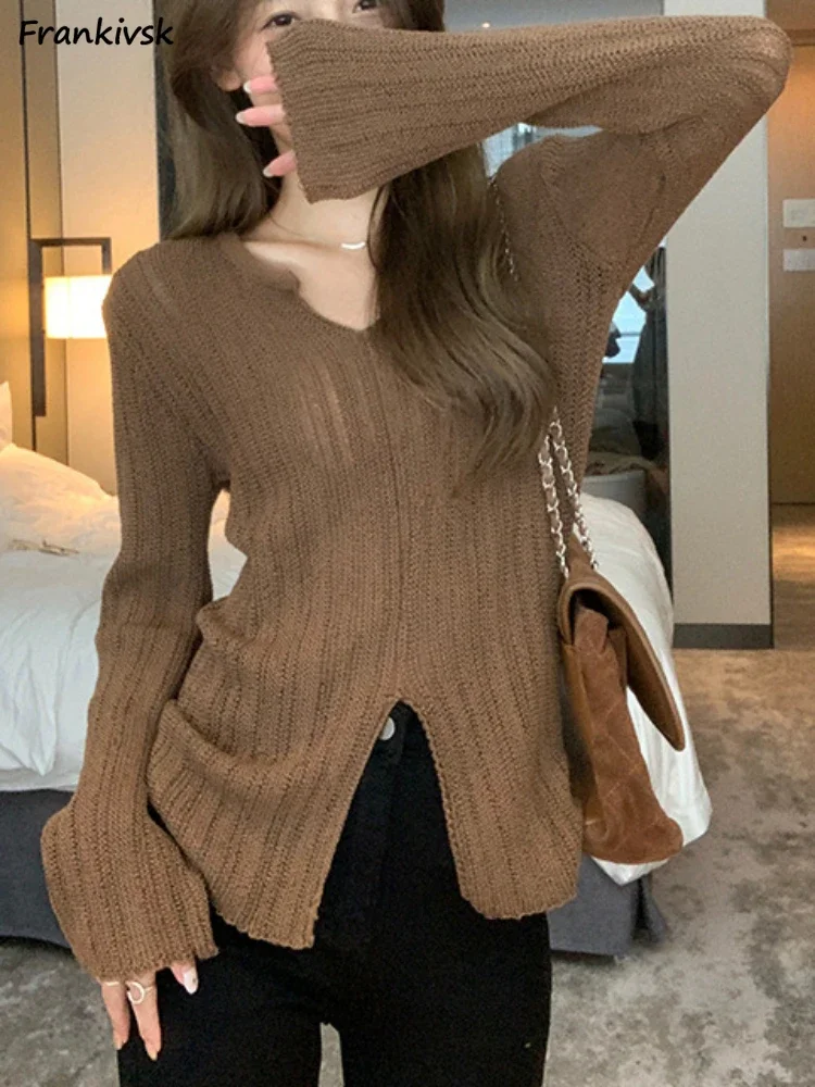 Свитера женские тонкие осенние с v-образным вырезом чистые простые универсальные элегантные для отдыха темперамент офисная женская уличная одежда модные нежные трикотажные