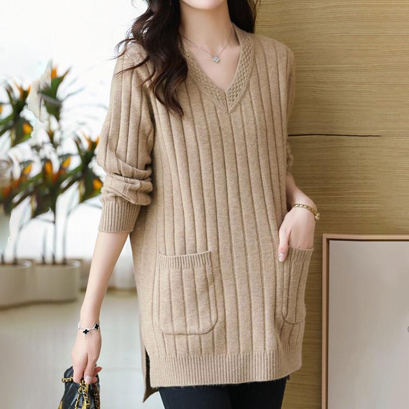 Свитер для женщин осень зима утолщенный пуловер свитер теплый вязаный свитер длинный рукав V-образный вырез большой размер свитер топы XXXXXL белый