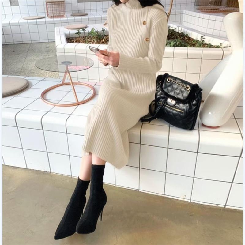 Свитер юбка осеннее платье с пальто водолазка вязаное платье средней длины и длинное внутреннее платье с низом-юбкой one size fits all