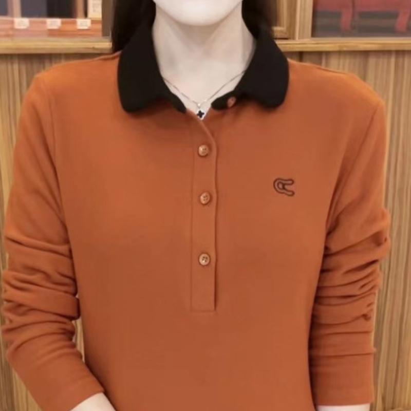 Свитшот с лацканами, модный однотонный новый топ поло с длинными рукавами, рубашка для мам среднего возраста на весну и осень, облегающая и замедляющая старение 5XL