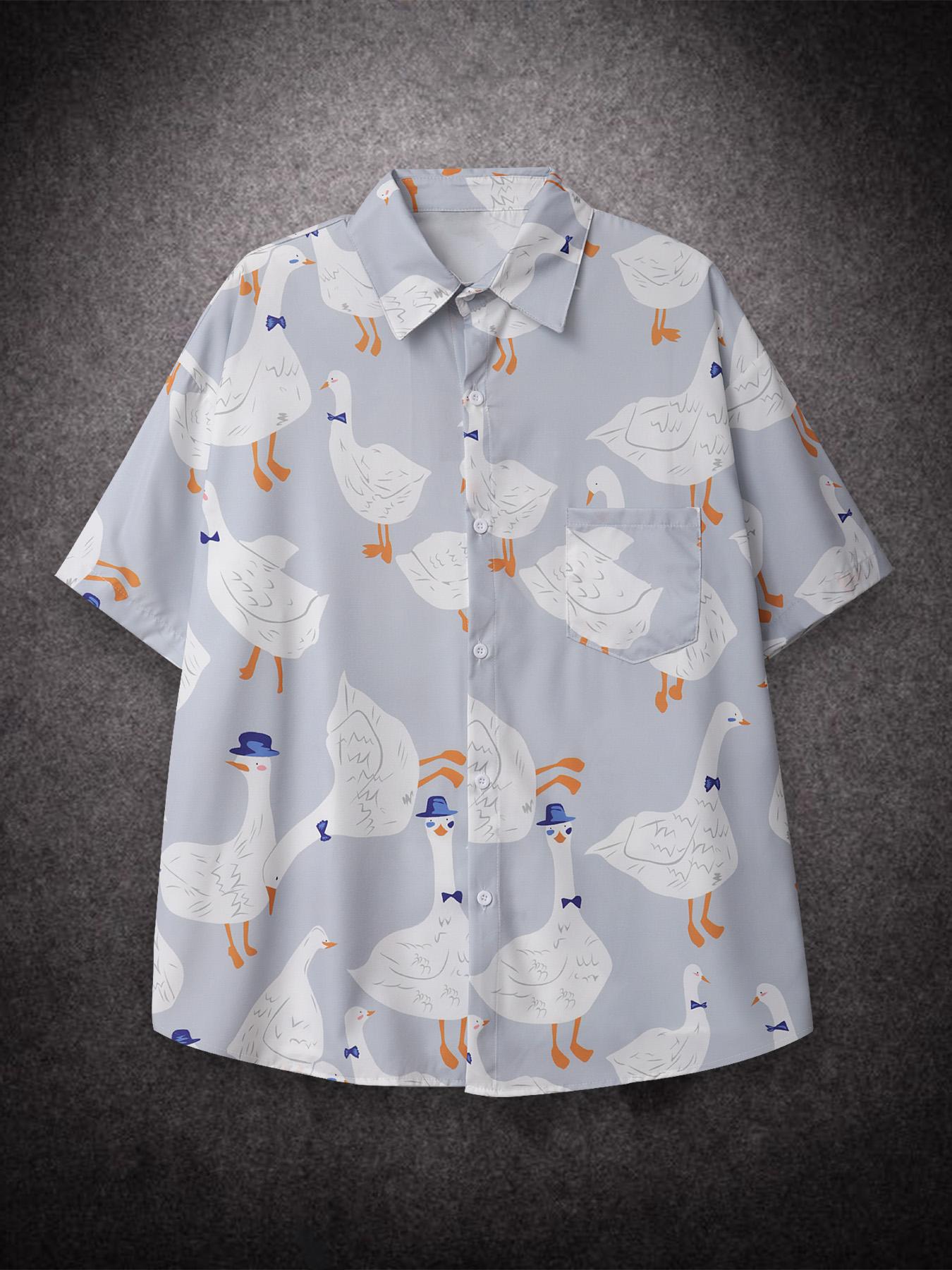 Свободная короткая мужская рубашка большого размера с рисунком гуся Prinr, Гавайская короткая мужская рубашка, повседневная мужская летняя универсальная уличная одежда с американским принтом для пар S светло-серый