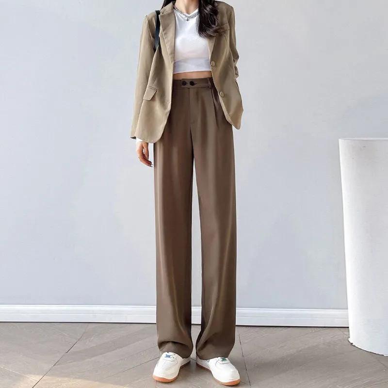 Свободные расклешенные брюки женские черные повседневные длинные брюки весна осень повседневные мешковатые штаны больших размеров S